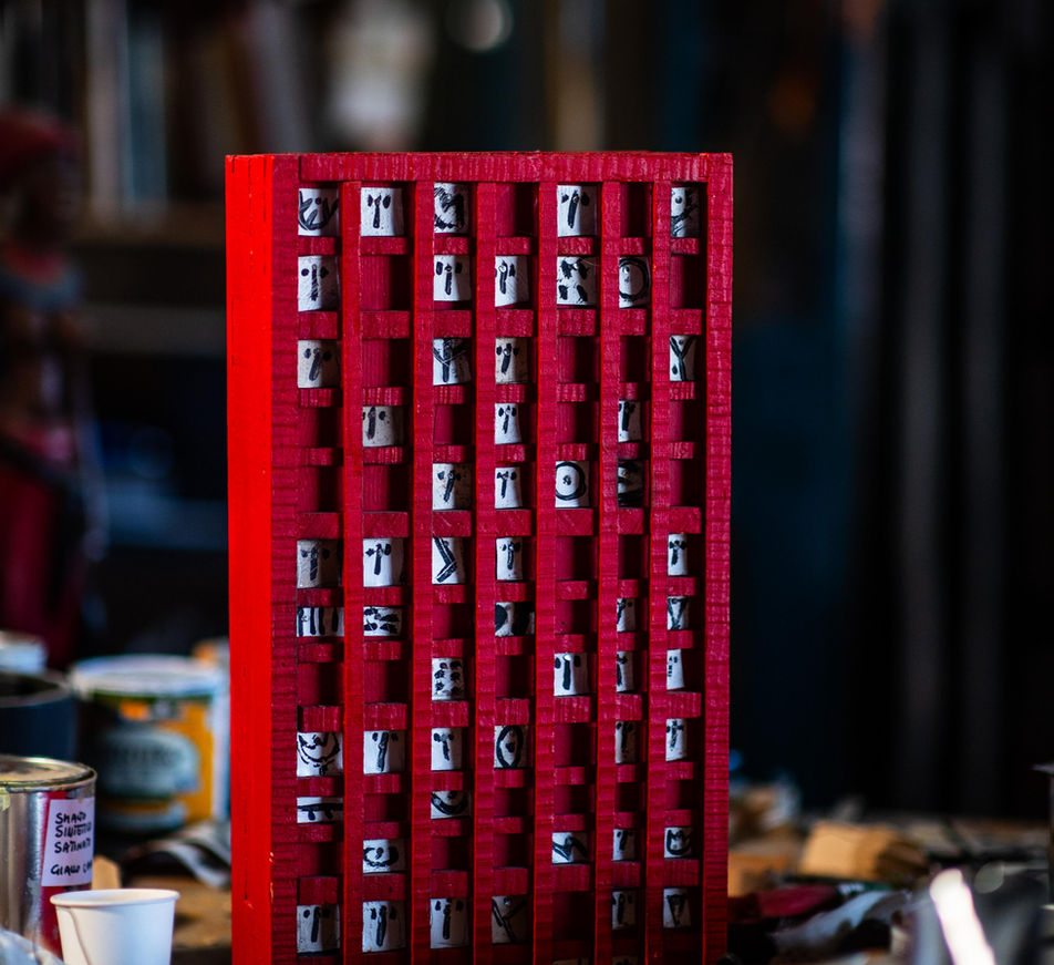 l scultura l titolo dell'opera "VOLTI DELLA MEMORIA" 2025 l formato: 40 cm x 26,5 cm x 5 cm l materiale: legno, metallo, smalto l colori: rosso, bianco e nero l prezzo: Euro 1700 l